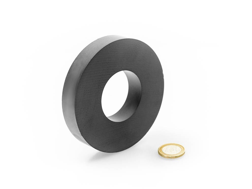 Magnet de ferită, inel D 100/45 mm, H 18 mm, Ferită, Y30, fără acoperire de suprafață